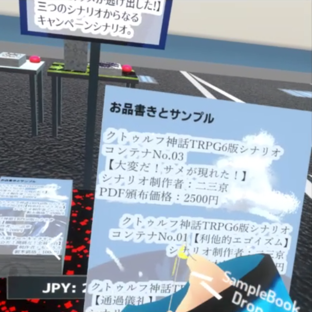 ちなみに実際の作業としてはVR上で立ち読みして気に入ったらPCで買うという感じですね。 立読みは以下のようにVR上で行う事ができ、気に入ったら横のブラウザボタンを押します。